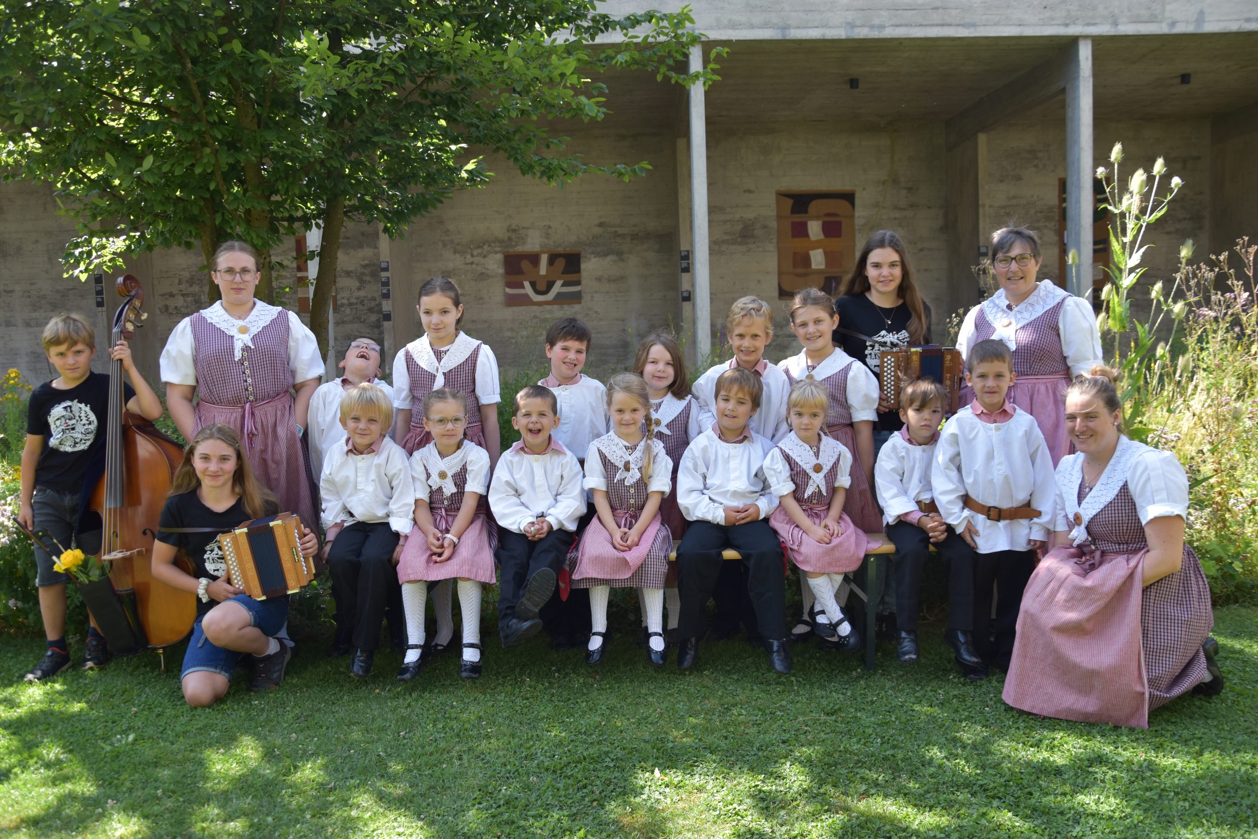 Wir haben das Glück, dass seit der Gründung im Jahre 1984 immer 20 bis 25 Kinder zwischen 4 und 10 Jahren in der Gruppe mittanzen. Mit viel Freude und Elan üben sie ca. acht verschiedene Tänze ein. Darunter sind spezielle Tänze aus der Region wie Gäuerlen oder Huusmusig. Aber auch ein Alewander, Si si no no oder der modernere Tatzelwurm gehören zu unserem Repertoir. Wir proben von Januar bis zu den Sommerferien. An etwa acht bis zehn Auftritten pro Jahr erfreuen wir die Leute an Kurkonzerten, Geburtstagen, in den Altersheimen oder an anderen Anlässen.
