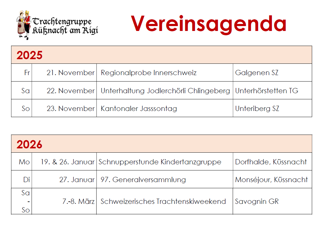Aktuelles Anlässe und Auftritte 2025 November: 22. November 2025 - Jodelchörli vom Chlingeberg Unterhörstetten TG (Aktive Tanzgruppe und Alphornbläser) Vereinsagenda